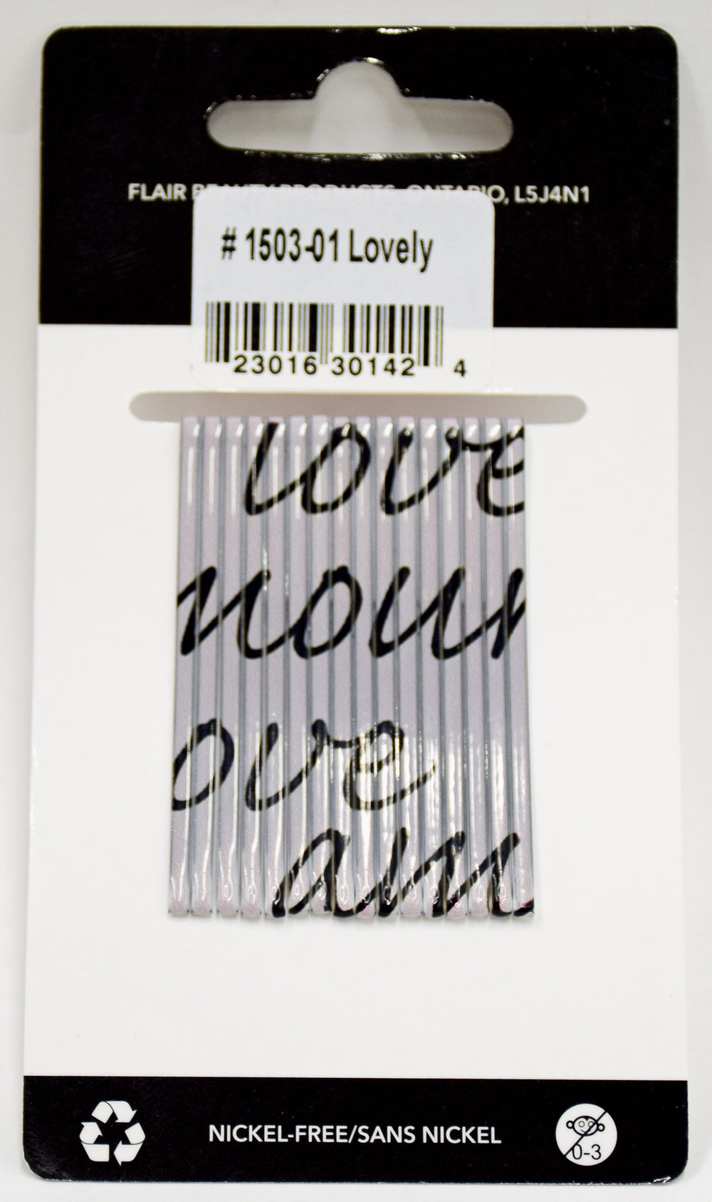 "Style " 16 patterned pins on front. Solid colour pink on back.